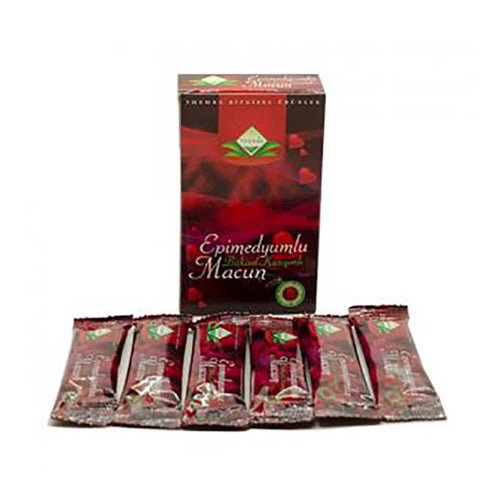 UPORABA: Aktivna Ikarin komponenta biljke Epimedium poboljšava prokrvljenost u genitalnom sustavu i erektilnu sposobnost. Macun med u vrećicama je namijenjen i muškarcima i ženama. Macun med povećava libido, erekciju, utječe na produljenje odnosa. Kod žena povećava seksualnu želju, povećava vlažnost i donosi olakšanje tijekom menstrualnih ciklusa. Turski Med utječe također na koncentraciju i pokretljivost spermija kod muškaraca. Uzima se 1 vrećica najmanje 45 minuta prije odnosa.